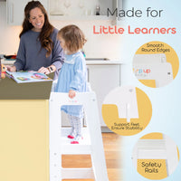 Niente più bambini che ti afferrano le caviglie chiedendo di essere sollevati! Ispirata alla filosofia Montessori, la Torre per bambini Stepup Baby consente al tuo bambino di partecipare pienamente alla vita familiare in modo sicuro e divertente.